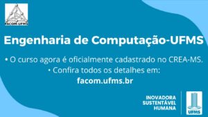 O curso de Engenharia de Computação, modalidade presencial, está oficialmente, a partir de agora, cadastrado no Conselho Regional de Engenharia e Agronomia de Mato Grosso do Sul (CREA-MS). Com o cadastro, os egressos do curso também terão o título de Engenheiro (a) de Computação, concedendo-lhes as atribuições com base nas Resoluções CONFEA nᵒˢ 380/1993 e nº 218/1973.
