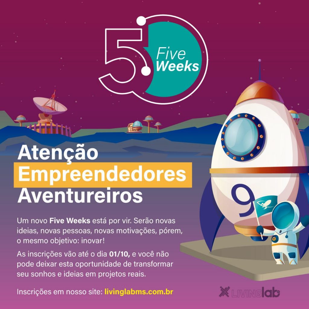 O Living Lab criou o Five Weeks, um programa de Pré-Aceleração do Living Lab MS que ja está em sua 9ª edição.