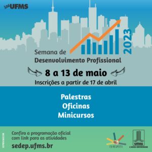 Promover a troca de experiências dos participantes com profissionais da respectiva área de formação, possibilitando criar um ambiente de integração com instituições públicas e privadas, no intuito de promover oportunidades de inserção no mercado de trabalho. Também, segundo a Resolução do COUN/UFMS nº 89, de 9 de abril de 2021, que institui a Política de Acompanhamento de Egressos, fica estabelecida como ação de aproximação dos estudantes às demandas da sociedade do mundo do trabalho, a Semana de Desenvolvimento Profissional da UFMS, inserida no Calendário Acadêmico do segundo semestre, aberta a toda a Comunidade Universitária e sociedade.