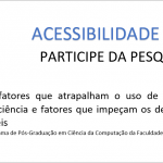 Prezad@s, Estamos conduzindo uma pesquisa com o objetivo de identificar fatores que atrapalham o uso de páginas Web por pessoas […]