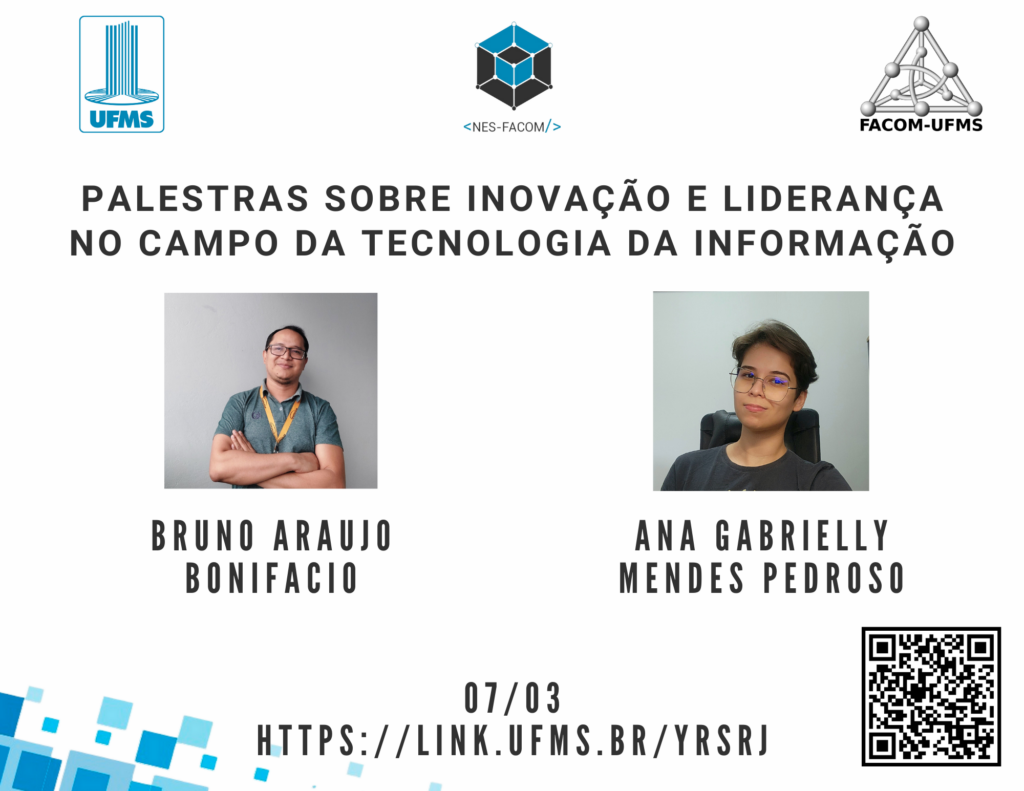 O Núcleo de Práticas em Engenharia de Software (NES) da Faculdade de Computação (Facom) da Universidade Federal de Mato Grosso do Sul (UFMS) tem o prazer de convidar a comunidade para duas palestras.