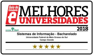 O curso de Sistemas de Informação – Bacharelado do(a) Universidade Federal de Mato Grosso do Sul – Campo Grande foi classificado com 5 estrelas, nota máxima, na avaliação de cursos superiores realizada pelo Guia do Estudante (GE) em 2018. As estrelas do curso foram publicadas no GUIA DO ESTUDANTE PROFISSÕES – VESTIBULAR 2019, já nas bancas e em breve também no site do GE.