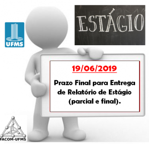 Dia 19/06/2019 é o prazo final para a entrega dos relatórios parciais e finais de estágio (obrigatório e não obrigatório) referentes ao primeiro semestre de 2019; prazo final para entrega da declaração final de estágio.