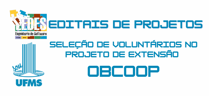 Está aberto o edital para seleção de alunos voluntários no projeto de extensão “Observatório do Cooperativismo da UFMS”. Os alunos atuarão em equipes que atuam na engenharia de duas aplicações móveis. As metas são coordenadas pelos professores Awdren e Hudson.
