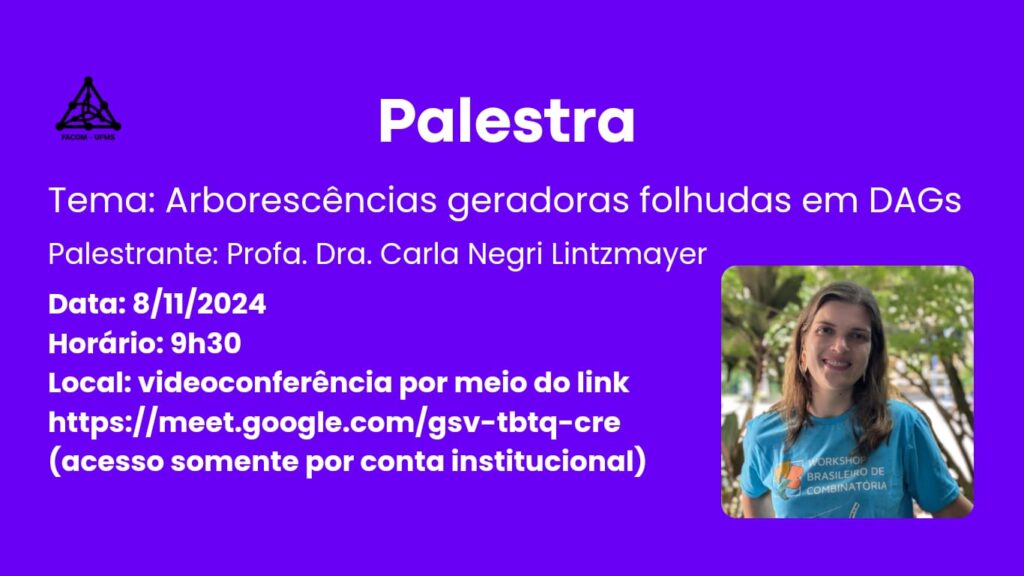 Palestrante: Profa. Dra. Carla Negri Lintzmayer/UFABC ( http://professor.ufabc.edu.br/~carla.negri/)