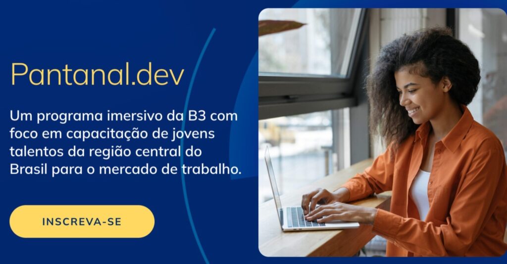 O pantanal.dev é um programa imersivo da B3 em parceria com a UFMS com foco em capacitação de jovens talentos da região central do Brasil para o mercado de trabalho.