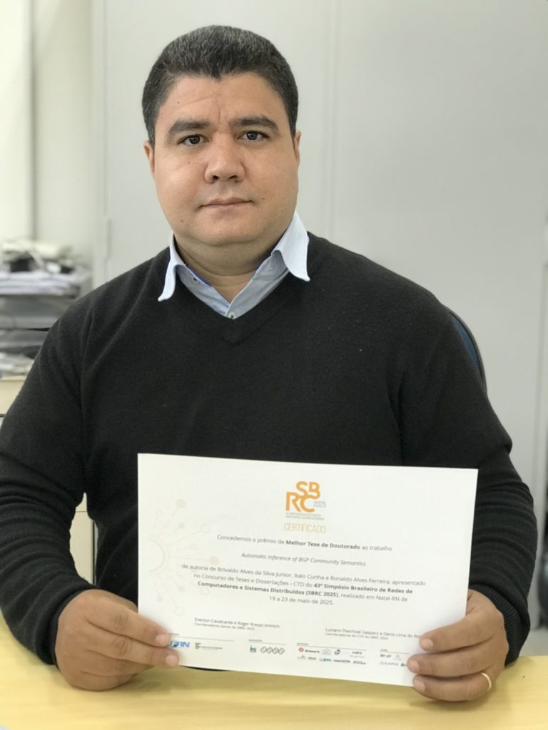 A tese de doutorado de Brivaldo Alves da Silva Junior, intitulada Automatic Inference of BGP Community Semantics, foi reconhecida com menção honrosa pela Capes. “[O trabalho] traz avanços inéditos para o entendimento das chamadas comunidades Border Gateway Protocol (BGP), etiquetas usadas por operadoras de rede para definir políticas de tráfego na Internet. Apesar de sua importância para a engenharia de tráfego, a ausência de documentação padronizada de comunidades BGP dificulta seu uso e compreensão”, comentou o orientador Ronaldo Alves.