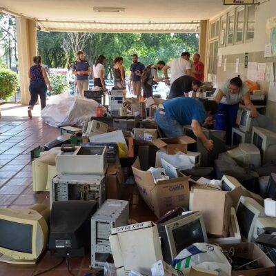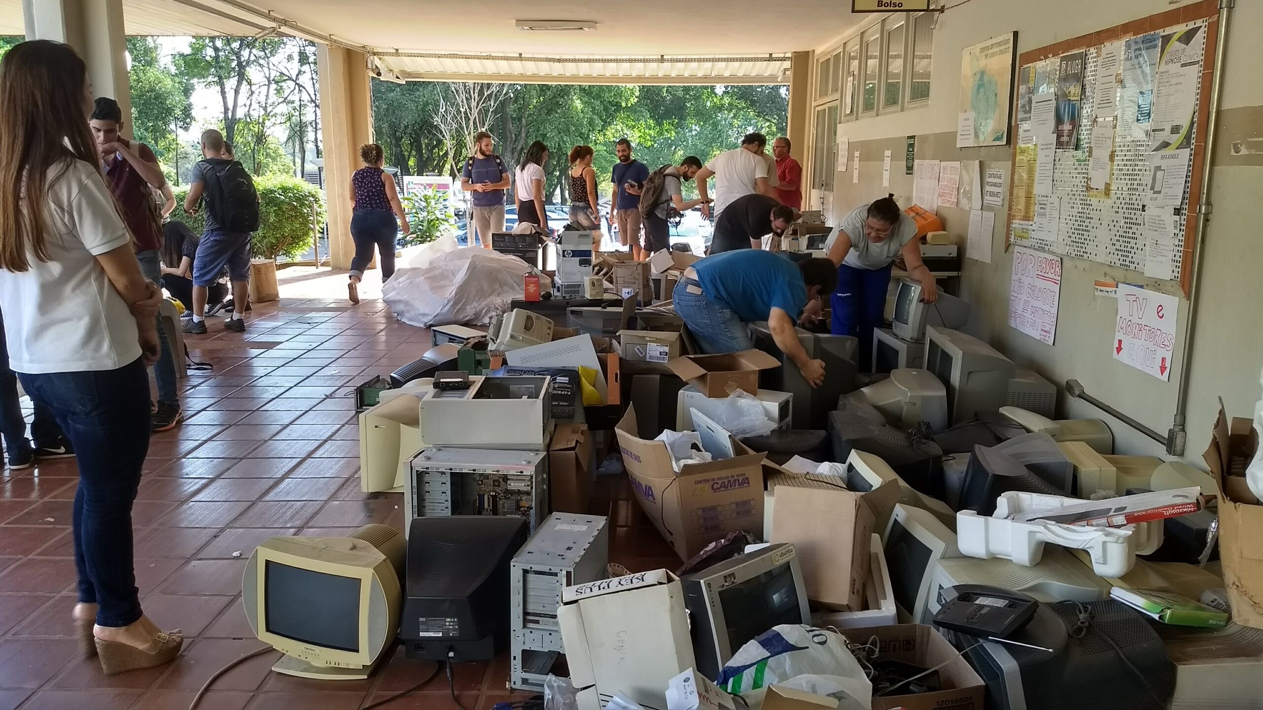 Na Semana de Arrecadação de Lixo Eletrônico organizada pela FACOM, membros da comunidade interna e externa podem trazer seus produtos eletrônicos funcionais ou não funcionais para descarte. Essa atividade visa conscientizar alunos e a comunidade externa sobre o descarte correto dos materiais, além de abrir oportunidade para arrecadação de peças e produtos que podem ser usados em atividades e pesquisas realizadas na universidade.