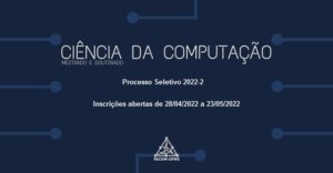 Foi publicado o Edital Unificado de Processo Seletivo das vagas remanescentes para os Cursos de Pós-Graduação stricto sensu da UFMS. Dentre eles, o Mestrado e Doutorado em Ciência da Computação, turma de ingresso 2022-2.