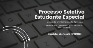 São oferecidas vagas em disciplinas do Mestrado em Computação Aplicada e Mestrado e Doutorado em Ciência da Computação. As inscrições ficarão abertas até às 11 horas do dia 15/02/2023 (horário de Mato Grosso do Sul).