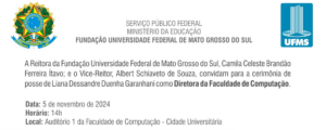 A Reitoria da Fundação Universidade Federal de Mato Grosso do Sul, Camila Celeste Brandão Ferreira Ítavo e o vice-Reitor, Albert Schiaveto de Souza, convidam para a cerimônia de posse de Liana Dessandre Duenha Garanhani como Diretora da Faculdade de Computação.