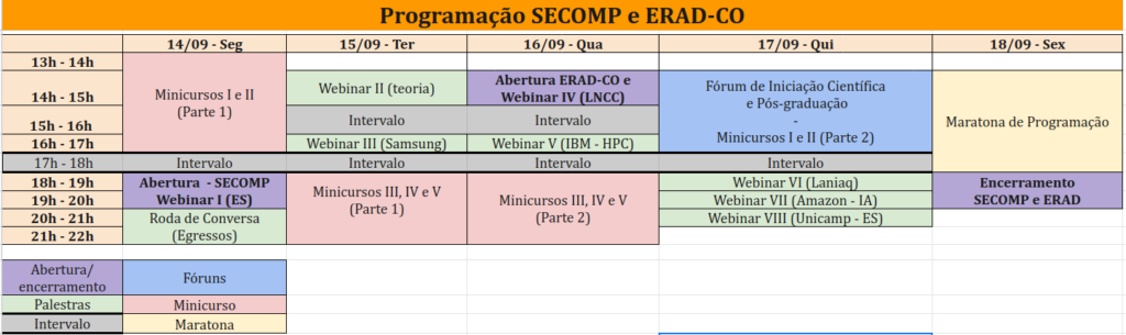 - Abertura ERAD-CO e Webinar IV – 16/09: 14h às 15h