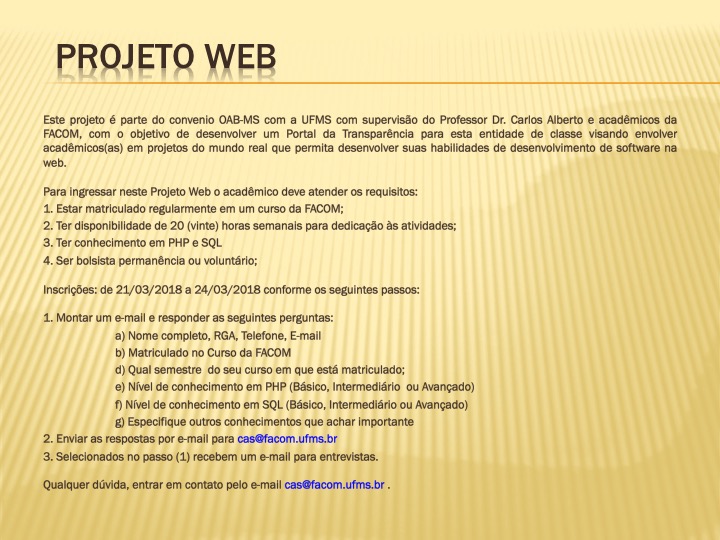 Projeto WEB – inscrições abertas
