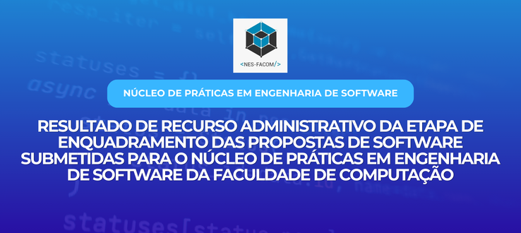 O Núcleo de Práticas em Engenharia de Software da Faculdade de Computação da Universidade Federal de Mato Grosso do Sul informa que foi publicado o resultado dos recursos administrativos da etapa de enquadramento das propostas de software submetidas para o Núcleo de Práticas em Engenharia de Software da Faculdade de Computação no EDITAL Nº 28 – GAB/FACOM, DE 5 DE DEZEMBRO DE 2025.