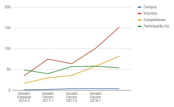 Outras estatísticas e fotos do evento em: http://maratona.wp.facom.ufms.br/2018/05/23/resultados-desafio-de-programacao-da-facom-2018-1/