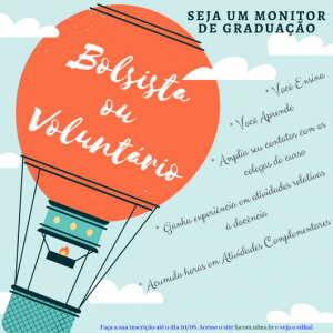 ** Publicação dos resultados do processo seletivo de Monitores de Graduação: 15 de agosto