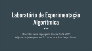 Para quem tem interesse em problemas computacionais de otimização. Seleção de Voluntários para Iniciação Científica em projetos do Lexa – […]